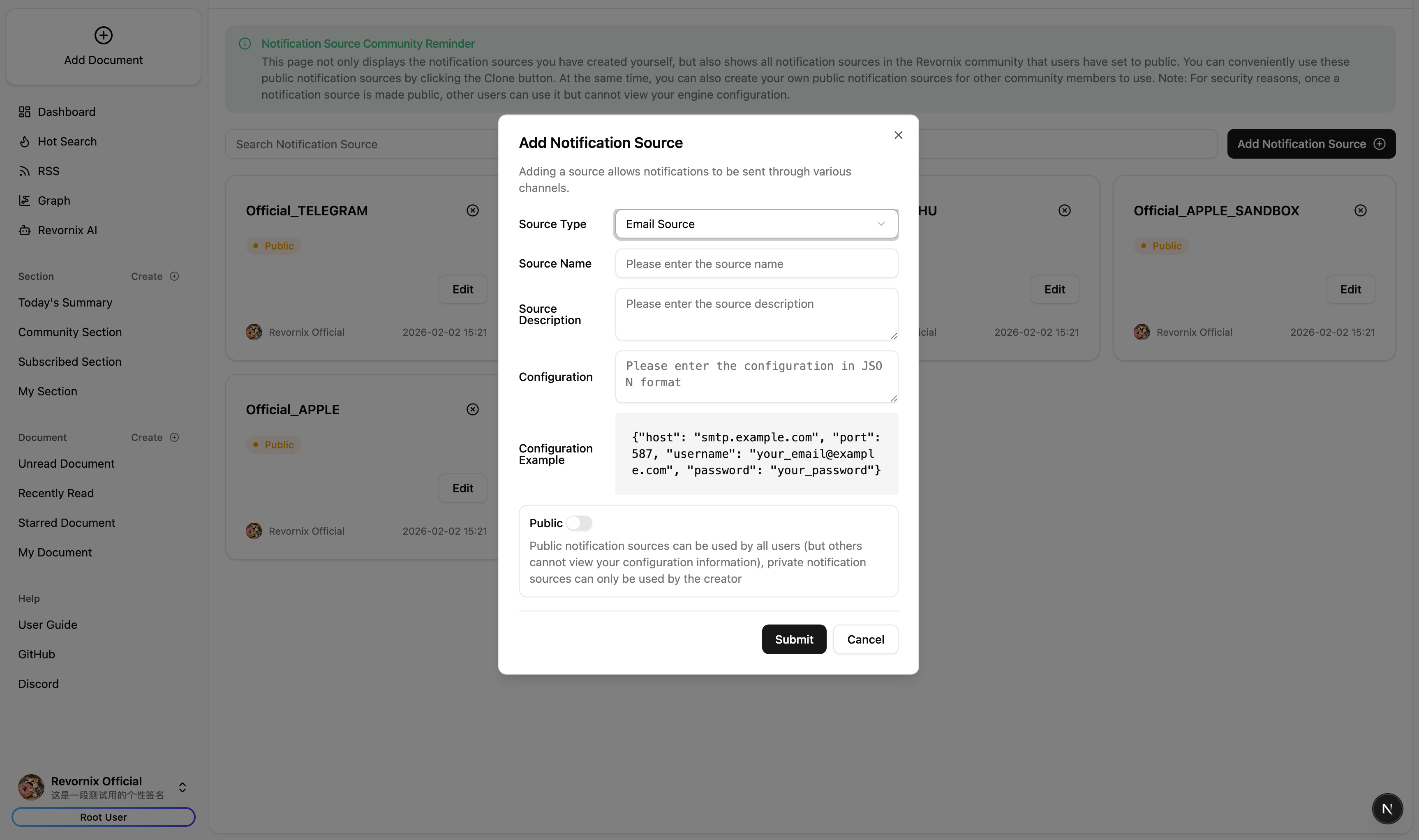 - Configure notification sources and targets