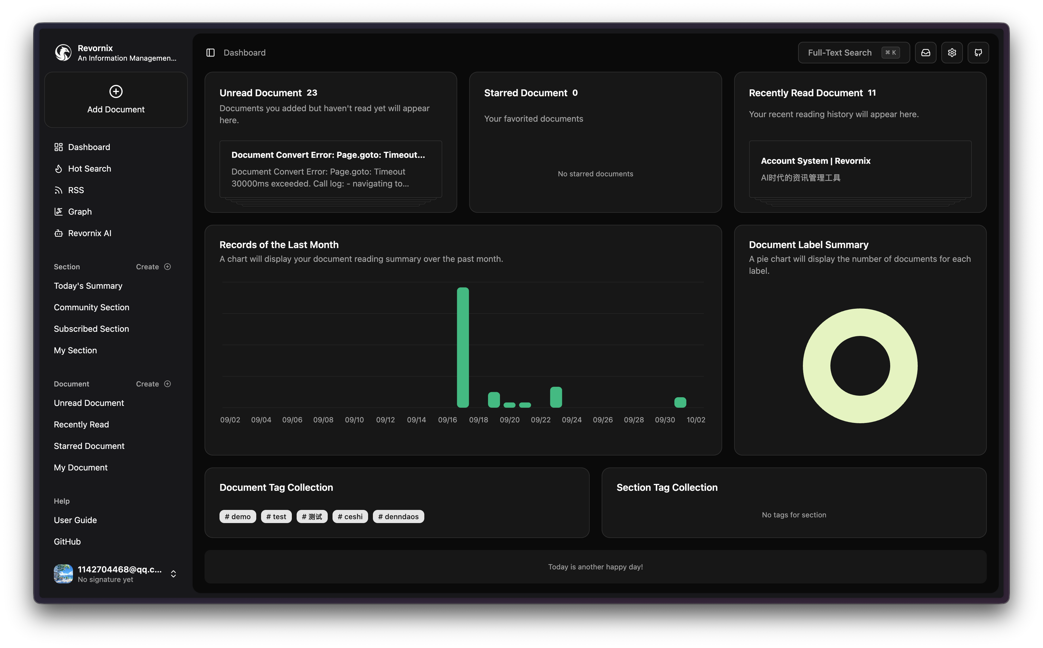 An information management tool for the AI era. Revornix helps you efficiently consolidate all visible information and provides you with a complete report at a specific time.